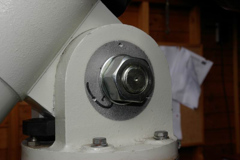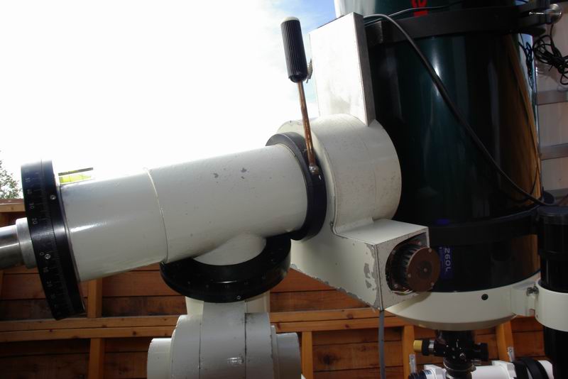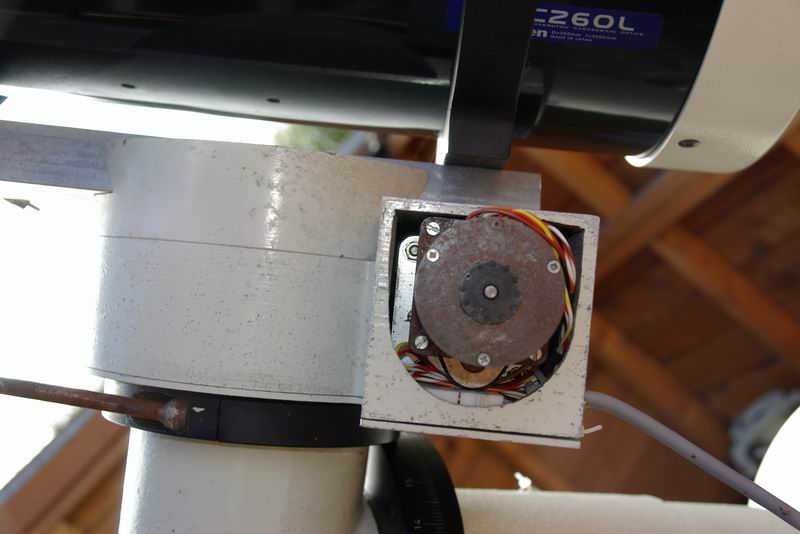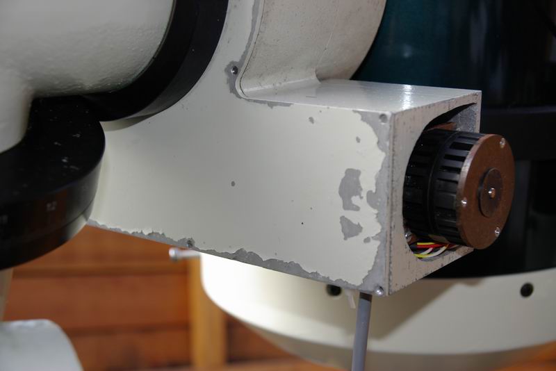 Declination clutch, declination motor housing opened to allow mounting of the Escap P530 motor.
