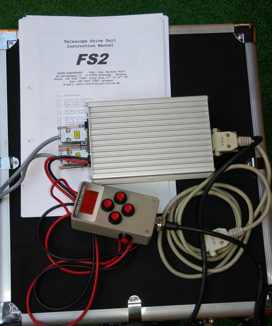 FS2 Goto controller and cables. FS2 is the 40 V version with autoguider option included. However when using SBIG cameras you will need a SBIG Relay Adapter Box between camera and FS2.