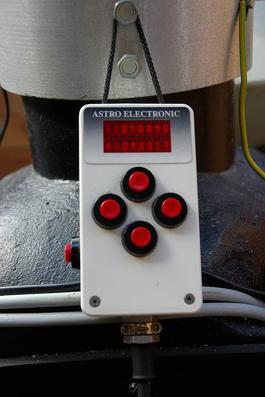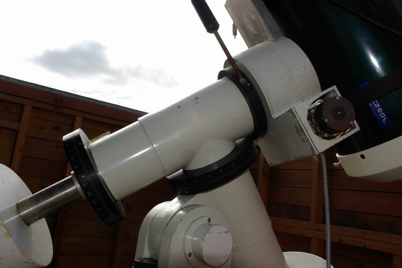 RA worm, similar system in declination but smaller wormwheel. Motor to worm coupling are Oldham couplings.