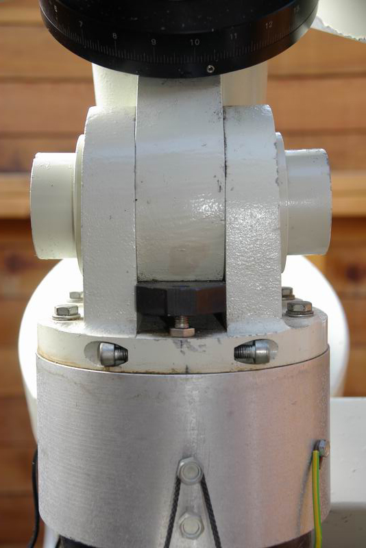 Azimuth adjustment is done by screws acting on a fixed pin on the pier adapter.