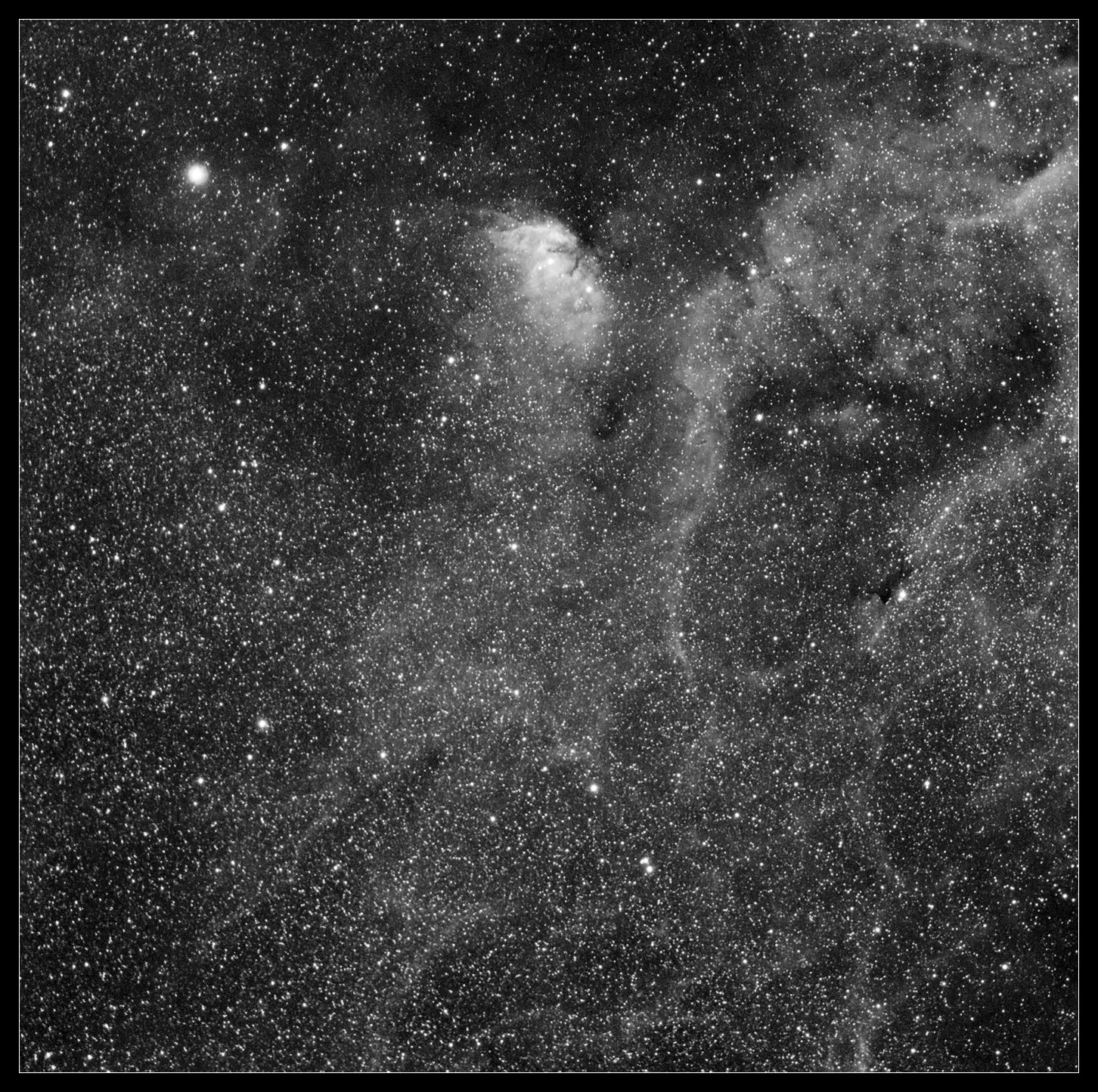 Scope: TMB 80mm Barlow: reducer-corrector f4.9 Camera: STL4020 Filters: Ha 200m Location: Ghent, Belgium Seeing: 4/10, slight mount misalignment Large version (1.5MB) here. Make sure IE does not resize.