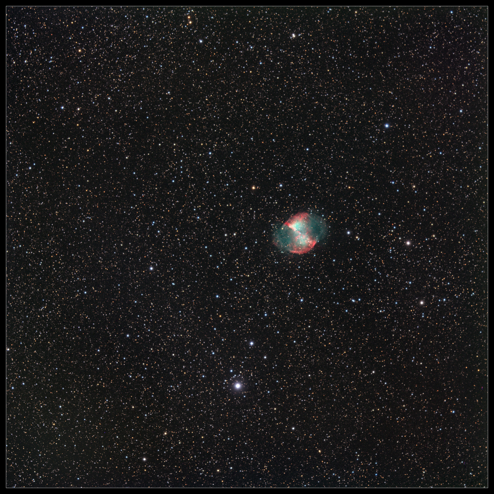 Scope: TOA130F Barlow: reducer-corrector f6 Camera: STL4020 Filters: LRHaGB 100:40:30:20:40 Location: Ghent, Belgium Seeing: 4/10 Large version (1.5MB) here. Make sure IE does not resize.
