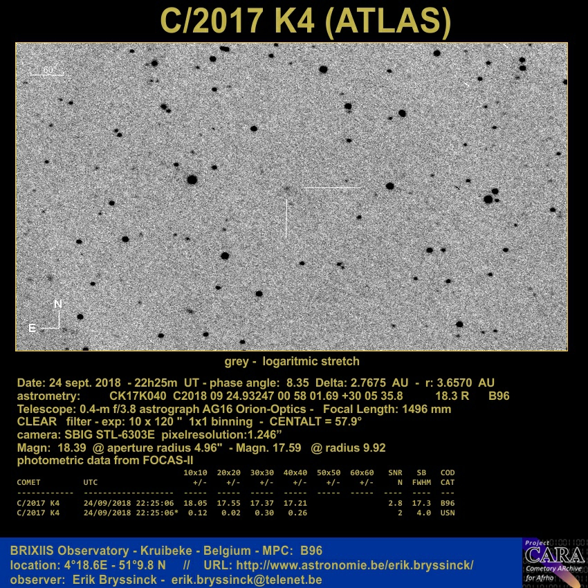 C/2017 K4 24/09/2018 22:25:06* 0.12 0.02 0.30 0.26 2 4.0 USN