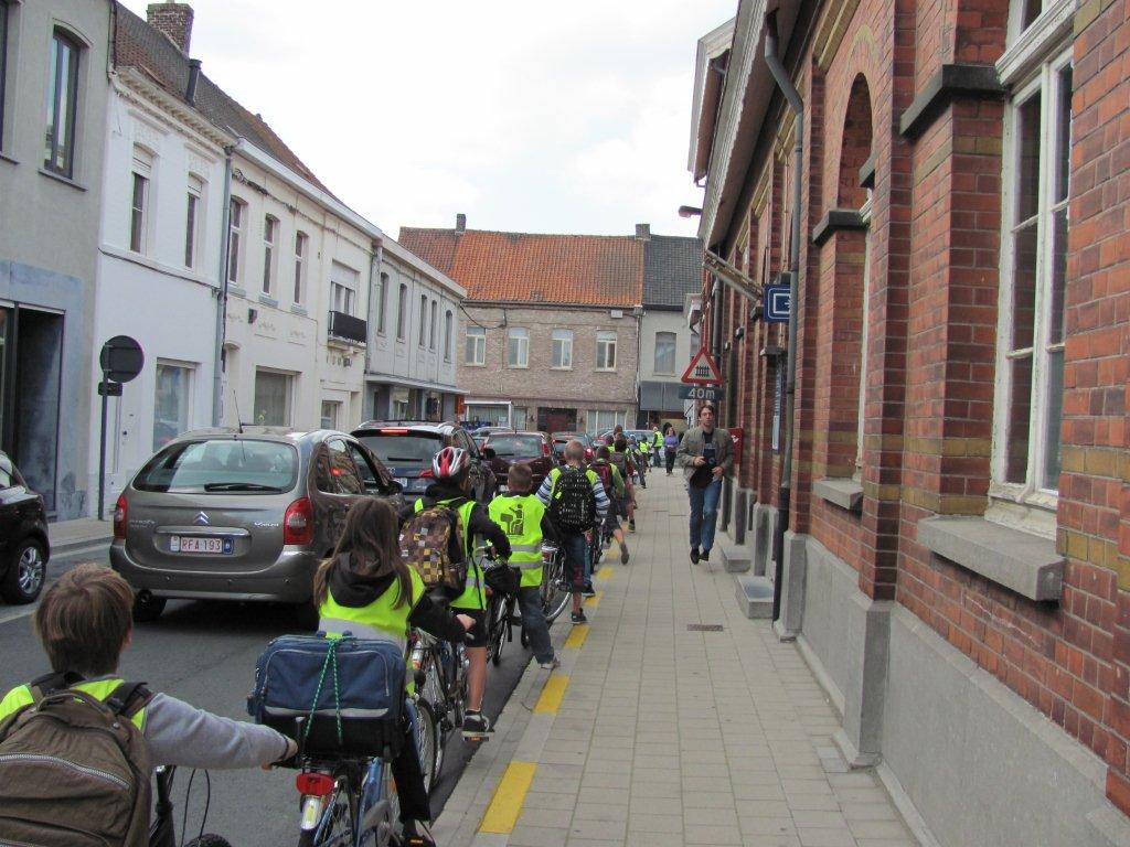 het fietspad in de Lode de Boningestraat op te rijden. Op de Grote Markt nemen ze een bocht van 90° maar