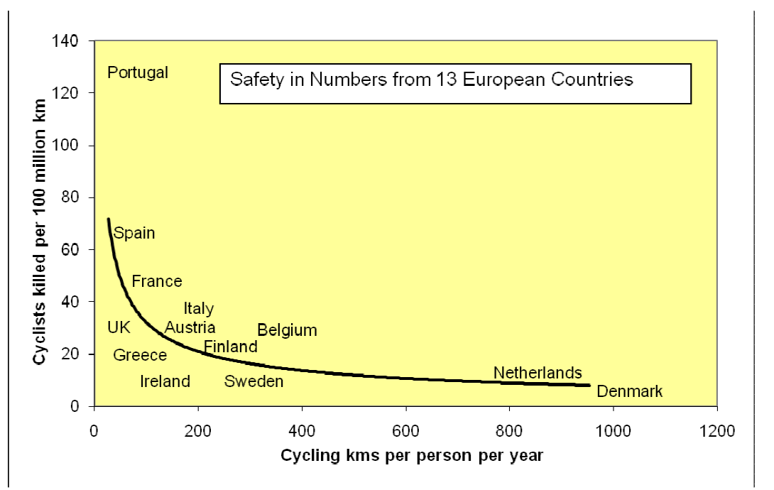 per miljoen inwoners, hebben we dan ook meer doden onder fietsers dan andere Europese landen. Een