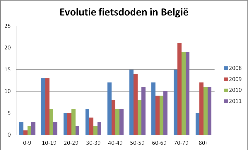 - De grafiek op deze pagina zet aan tot nadenken. Terwijl er een gestage daling is van het aantal doden onder de fietsers